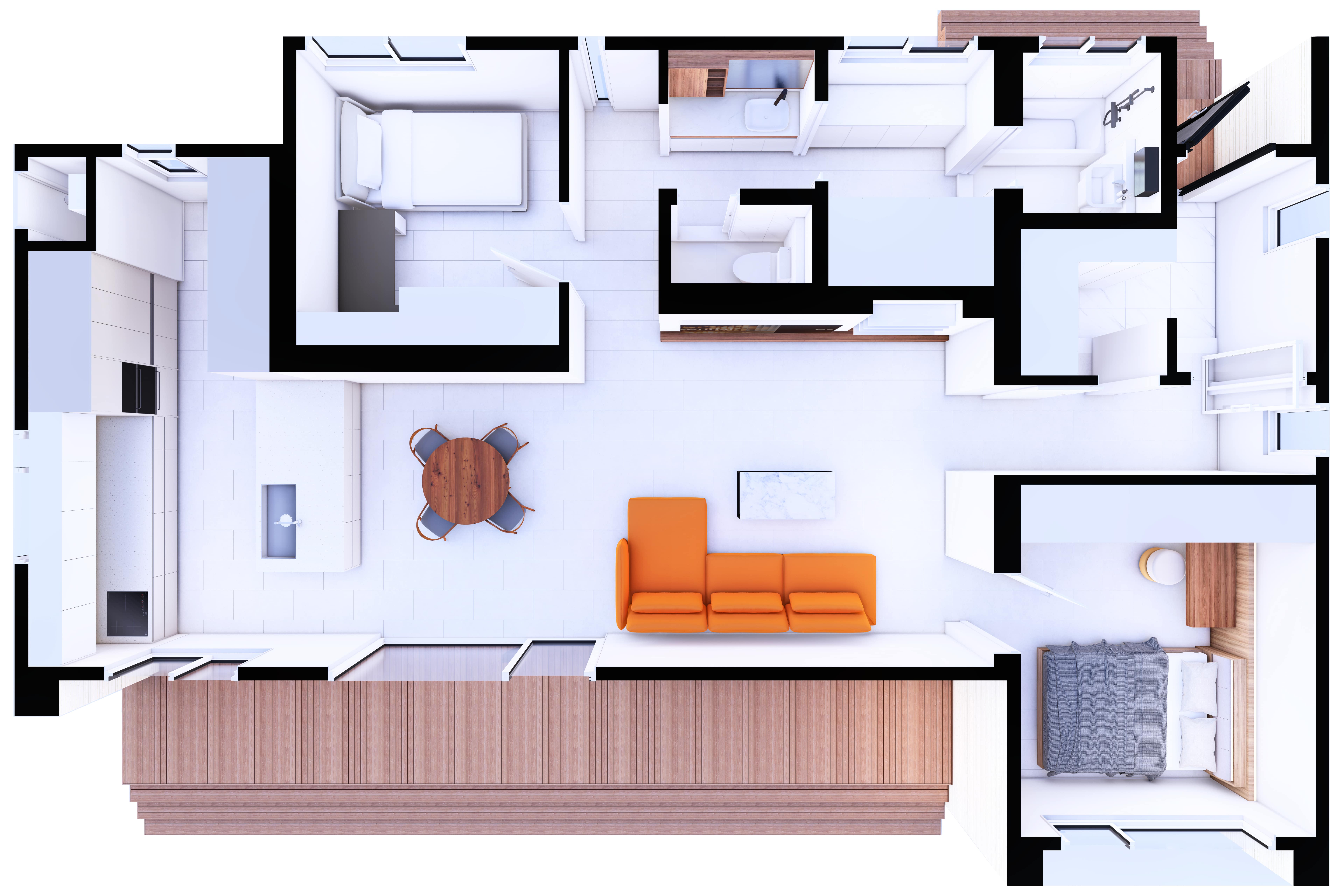 - 방 2개 / 화장실, 세면실, 세탁실, 욕실 / 거실 / 주방 / 보일러실