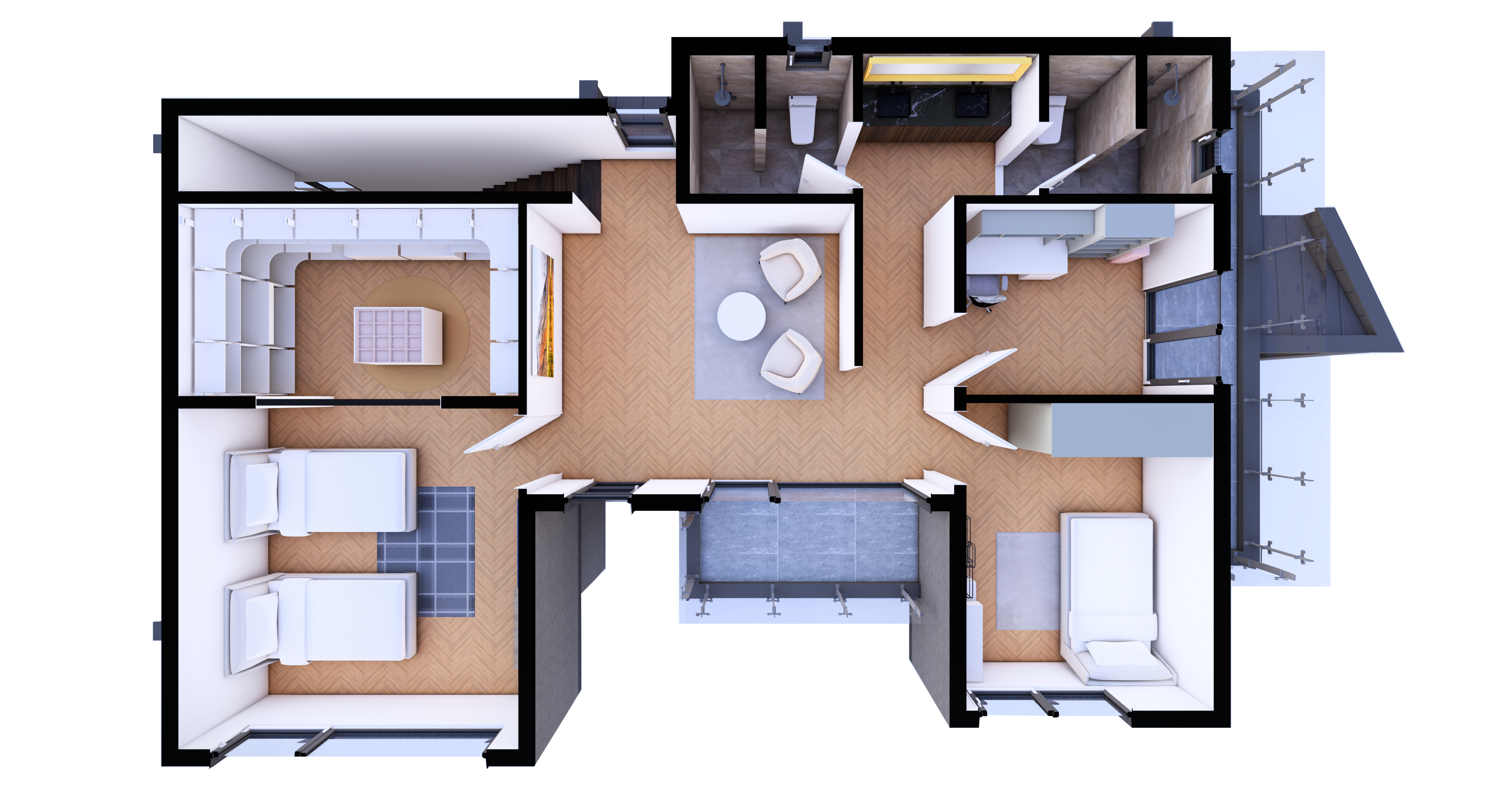 - 방 3개 / 거실 / 화장실 2개 / 드레스룸 / 테라스