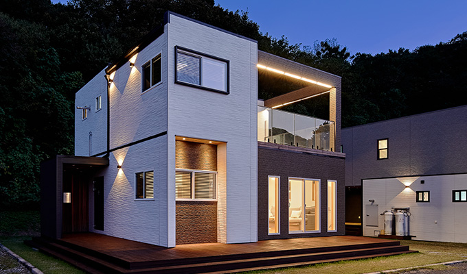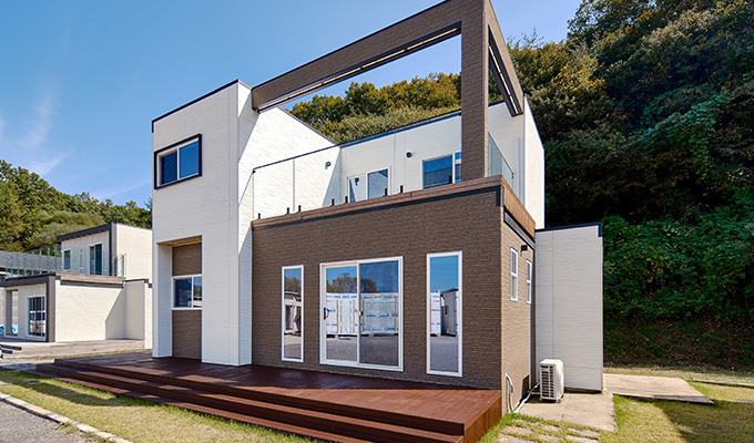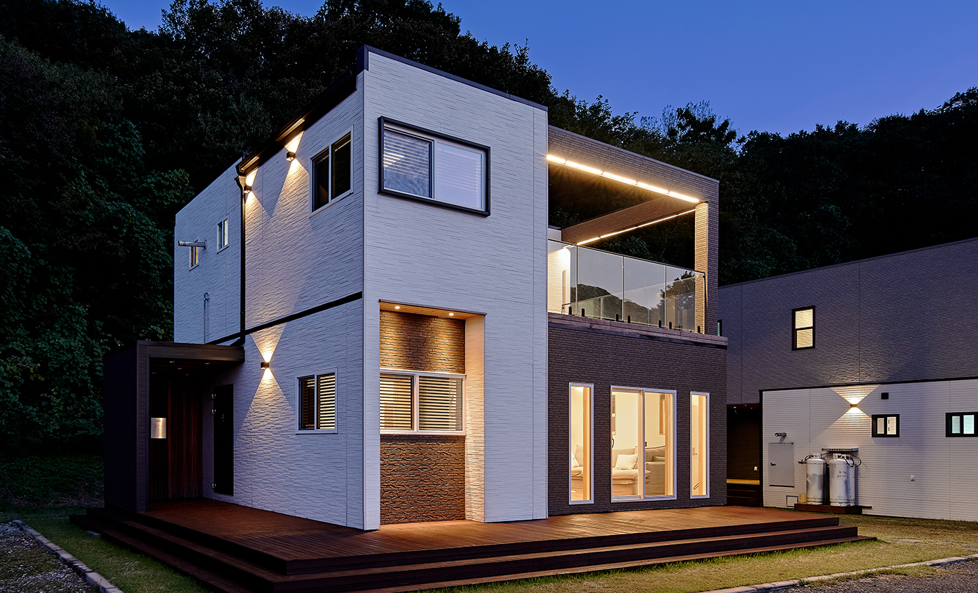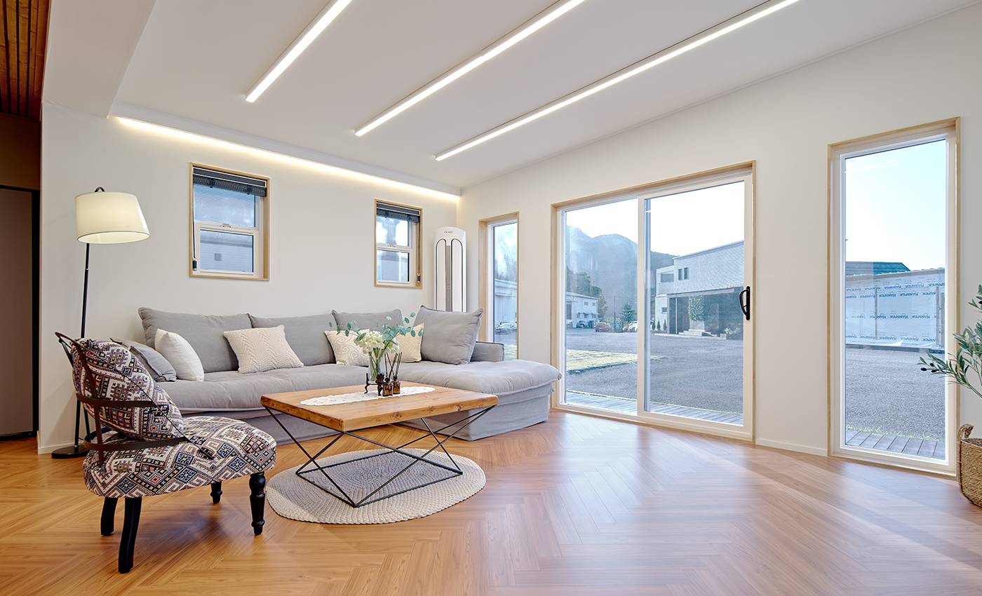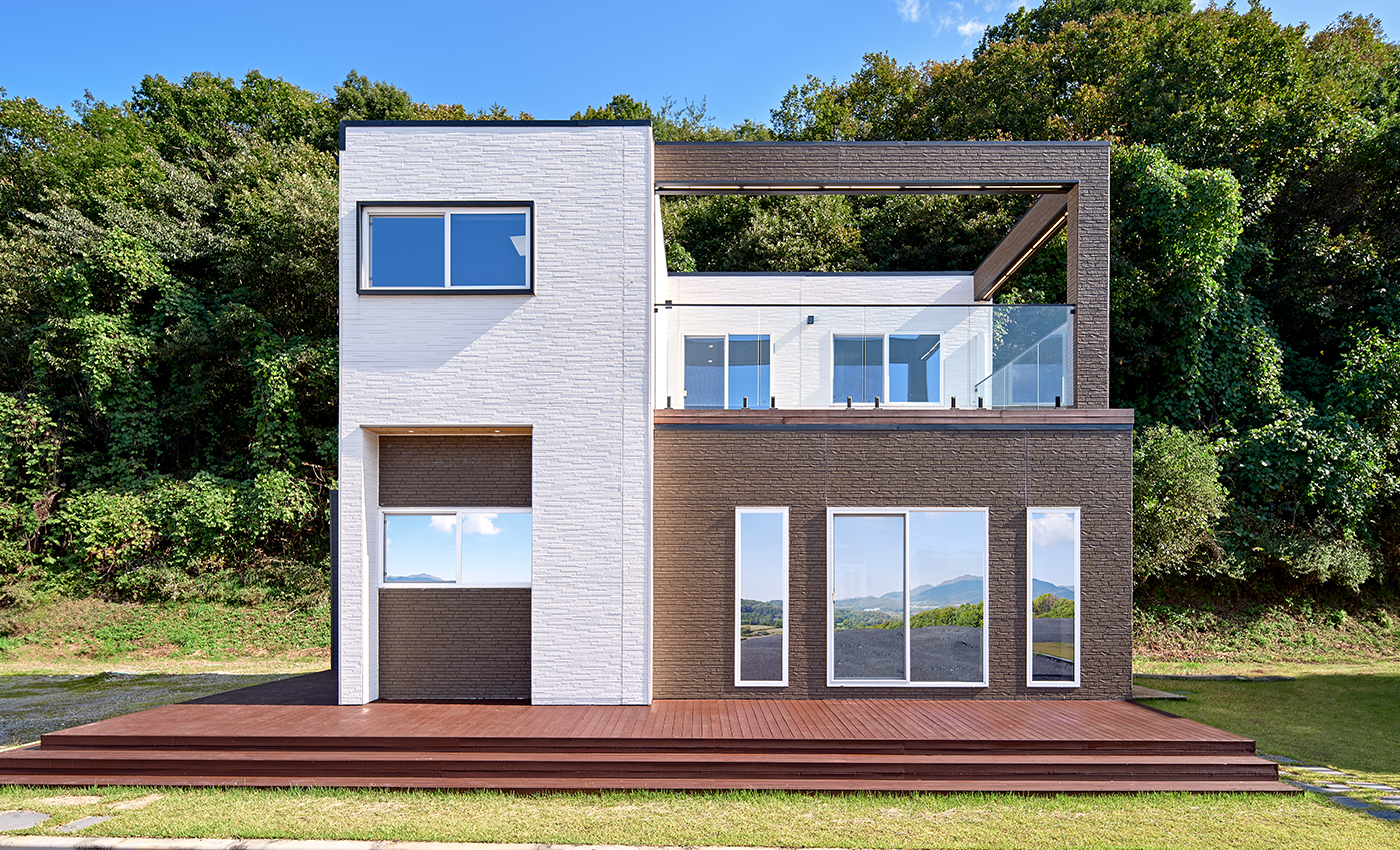 이동식 모듈러 경량목구조. 작은집의 베스트 셀러모델로 가장 인기 모델이며 세컨하우스, 전원주택, 펜션 다목적 용도에 적합한 구성의 주택입니다.